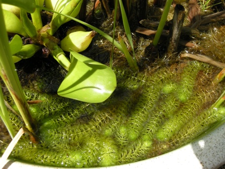 ミジンコをたまにムジナモ水鉢に投入すればムジナモは自然と捕獲します。ムジナモ水鉢にもともと藁を入れておけばミジンコは発生するのでこの手間は必要ないかもしれません。あくまでミジンコ投入は栄養補給と考えればよいでしょう。