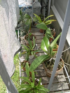遮光ネットを張る事で夏の強い日差しを抑えることが出来ます。特に7,8月は気温も高く、遮光ネットを張る事でかなり植物の暑さのダメージは軽減されると思いますし、着生種の蘭の栽培には弱光が欠かせません。木漏れ日で良いのではないのか?と思われる方もおられるようですが、木漏れ日だと暗すぎるのです。